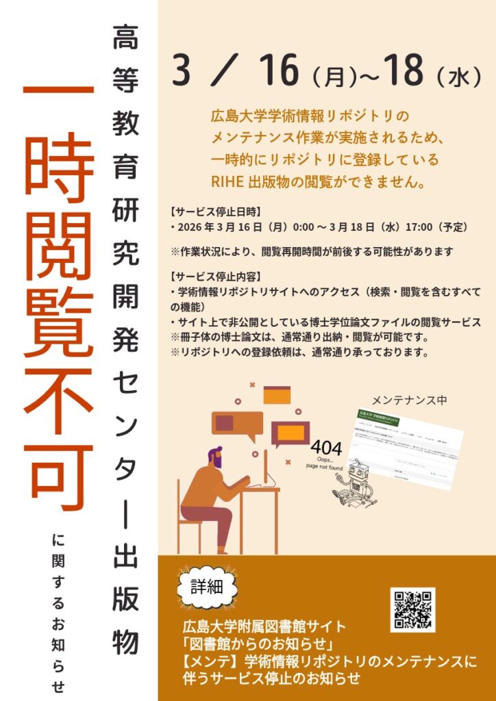 [Notice] On March 16-18, 2026, some RIHE publications will be temporarily unavailable due to maintenance of the Hiroshima University Institutional Repository.